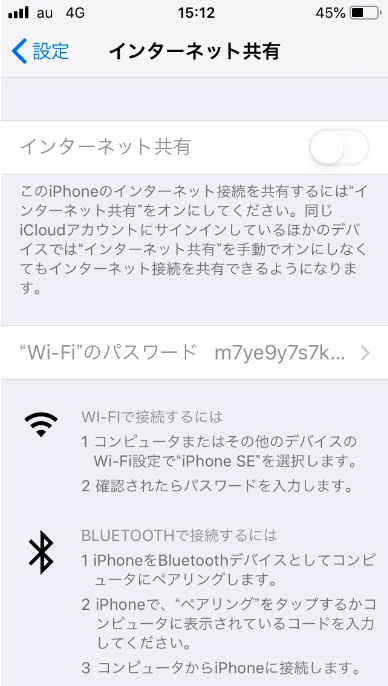 プロファイルが適用されたデバイスは、「設定アプリ > インターネット共有」の項目が非活性状態となります。