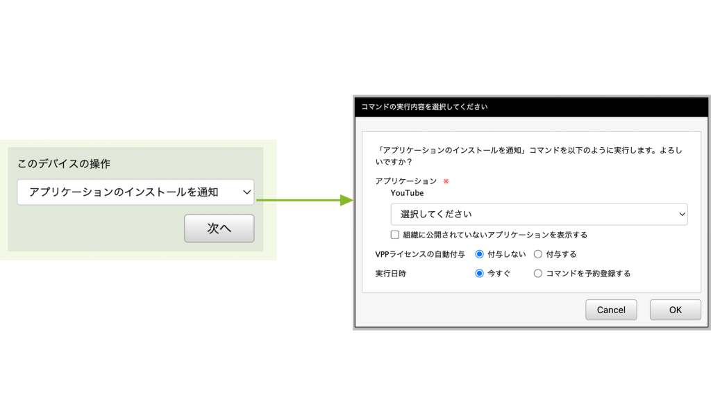 デバイスに VPP アプリケーションのインストール通知コマンドを実行する