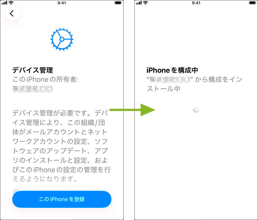 4. デバイス管理画面が表示されます。[ この iPhone を登録 ] をタップすると、MDM 構成プロファイルのインストールが開始されます。