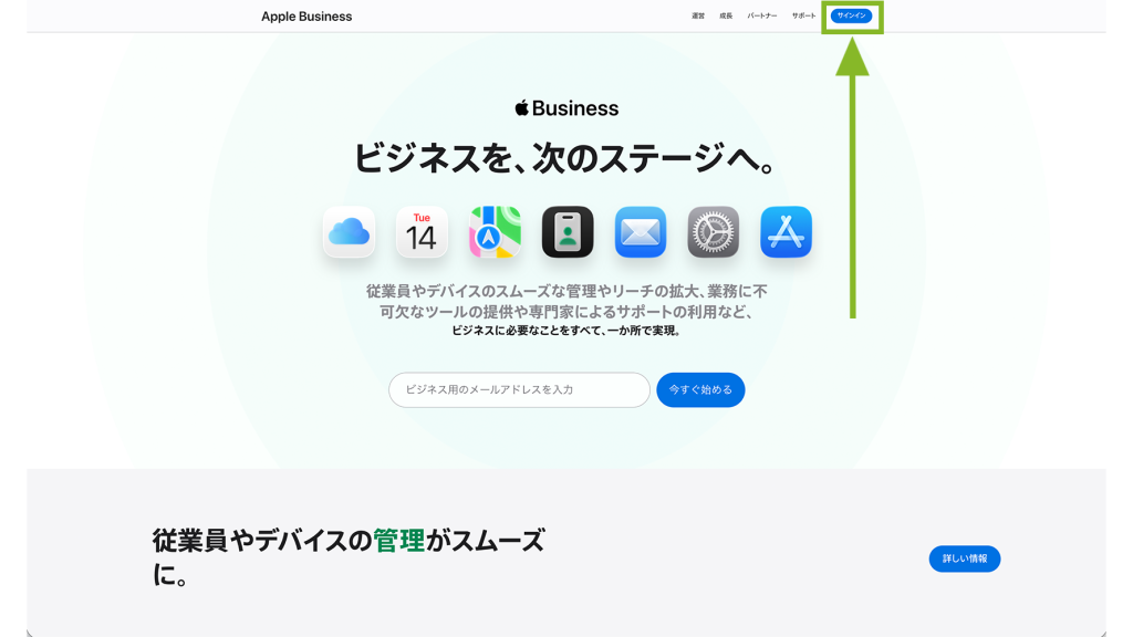 ※Apple Business:IT 部門はデバイスの導入、コンテンツの購入と配布、組織内での役割の管理を自動化できるサービスです。MDM とシームレスに連係するので、デバイスの登録、コンテンツの導入、管理者権限の委任も簡単になります。