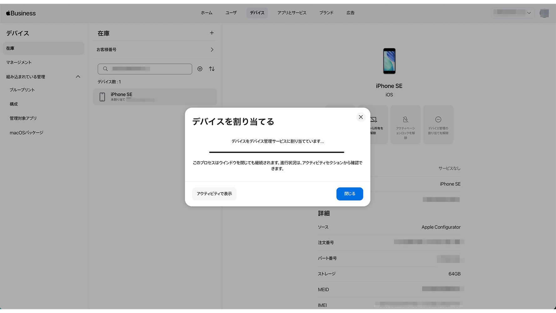 ※ 代理店などから ADE デバイスとして購入したデバイスの場合、デバイスを Apple Business に登録する前に、Apple お客様番号や販売店 ID を Apple Business へ追加しているかご確認ください。