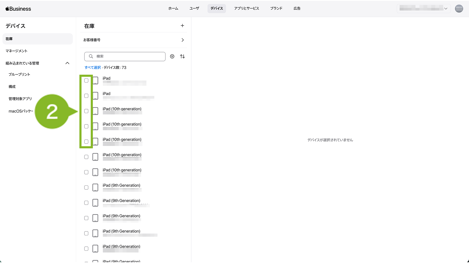 2. 割り当てたいデバイスにチェックを入れます。
