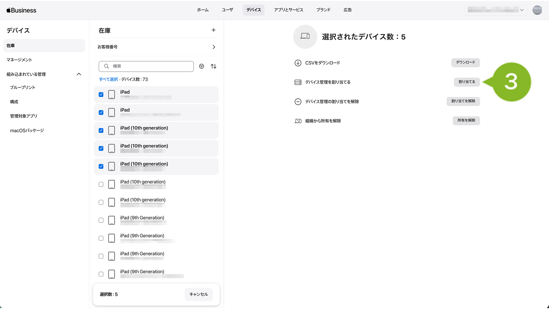 4.[デバイス管理を割り当てる]をクリックします。