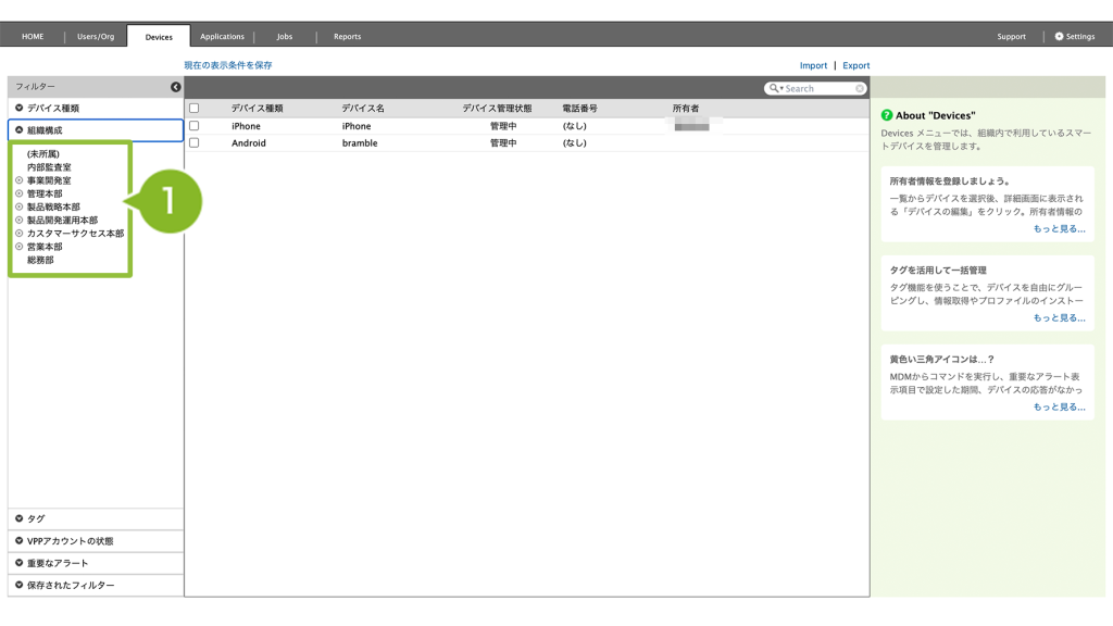 1. ABM 左メニュー「デバイス」を選択します。