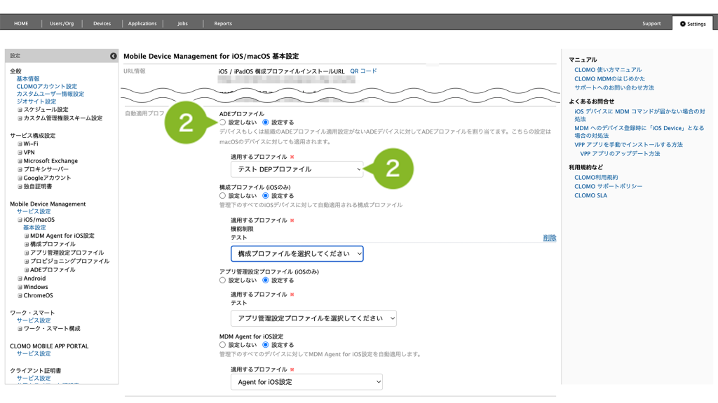 iOS デバイスを CLOMO で管理するための初期設定として、MDM 構成プロファイルを作成します。