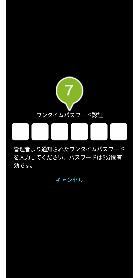 7. ワンタイムパスワード認証画面に切り替わります。ワンタイムパスワードは手順5で表示しているワンタイムパスワードを入力します。
