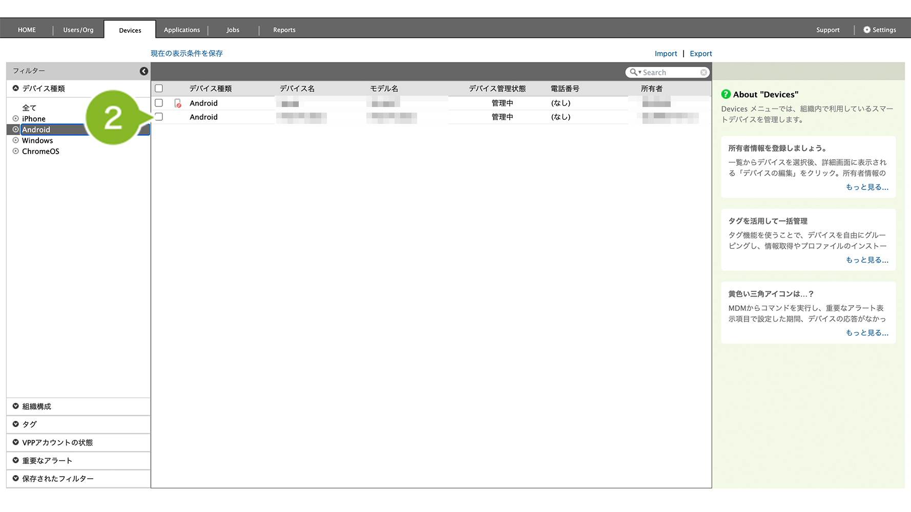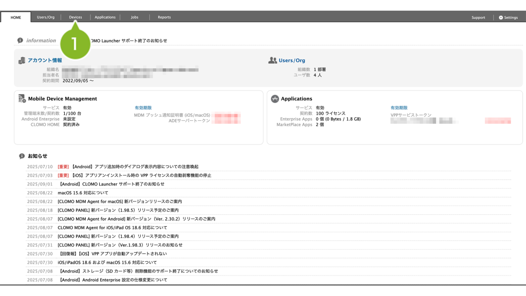 1. CLOMO PANEL にログイン後、[Devices]をクリックします。