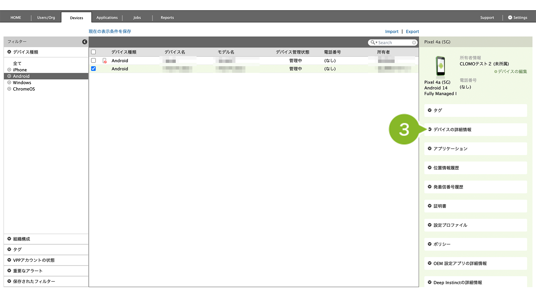 3. デバイス詳細情報を選択します。