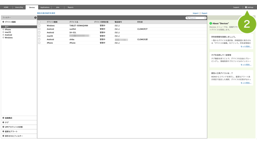 Devices 画面でデバイスを選択して、「構成プロファイル」の欄をご確認ください。