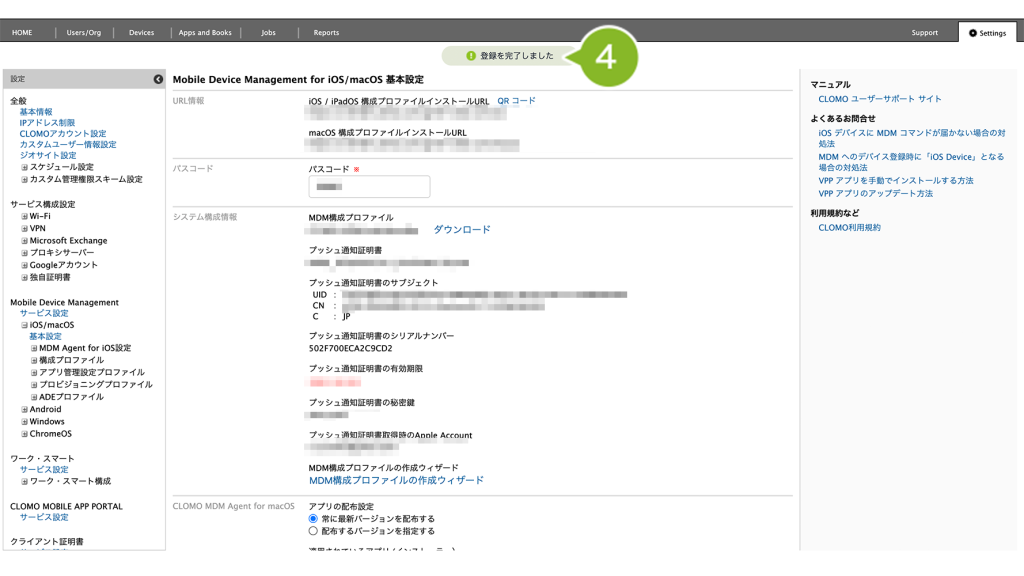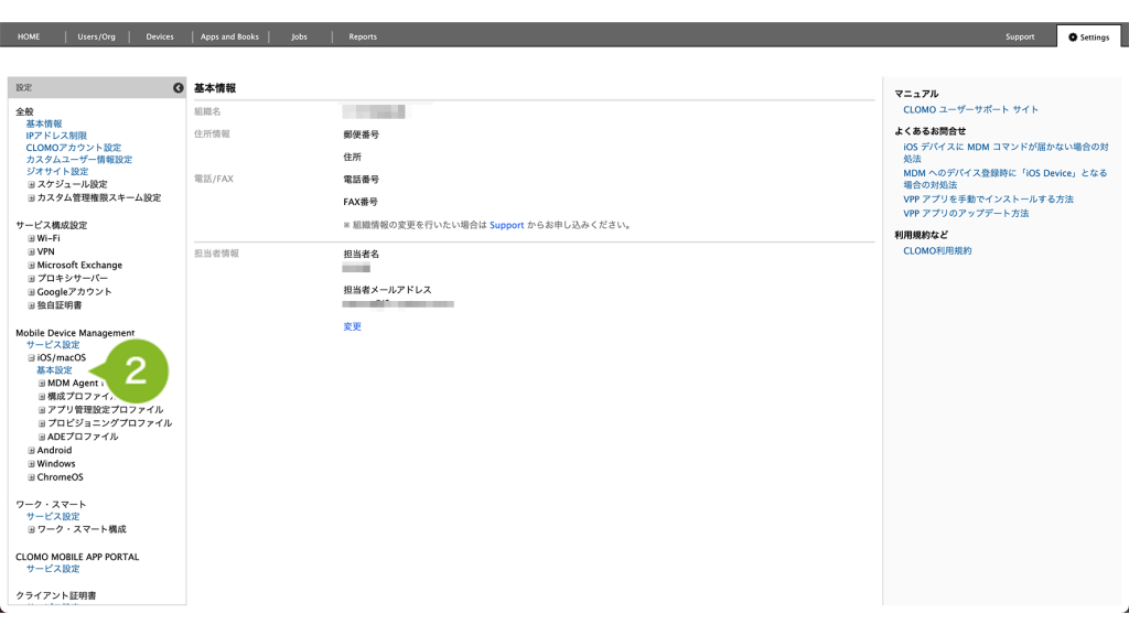 2. Mobile Device Management の[iOS / macOS]もしくは[Android]を選択し、[基本設定]をクリックします。