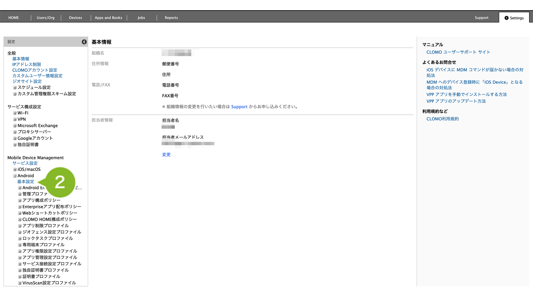 2. Mobile Device Management の[Android]を選択し、[基本設定]をクリックします。