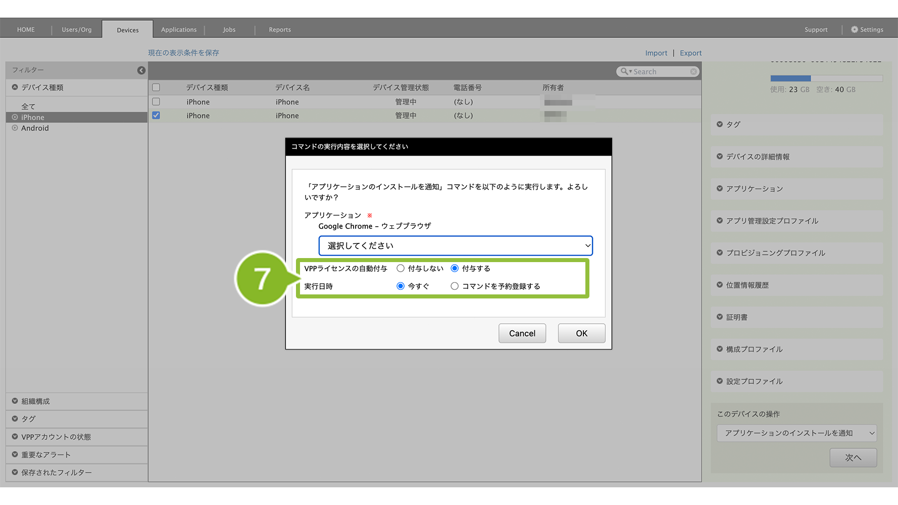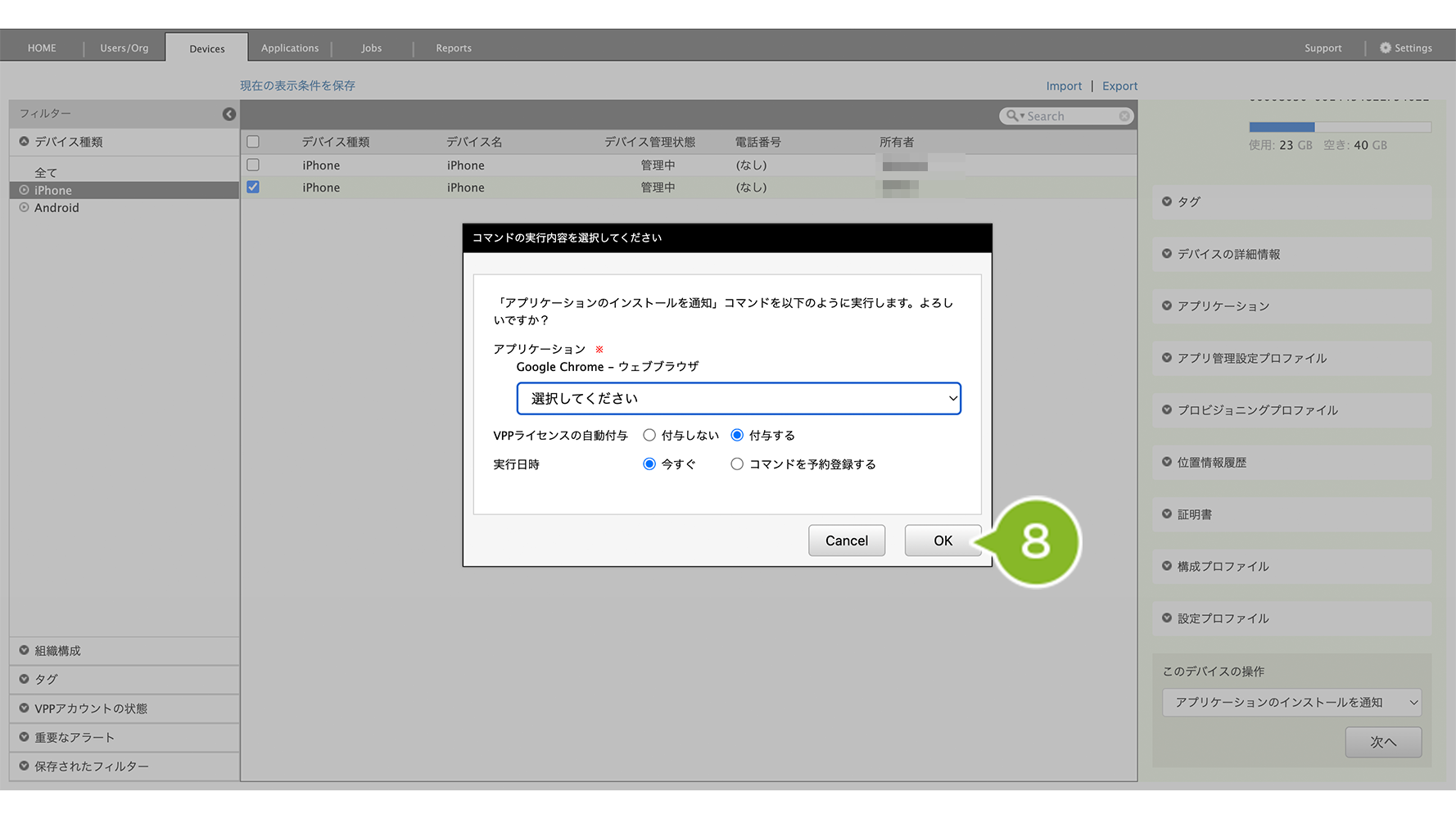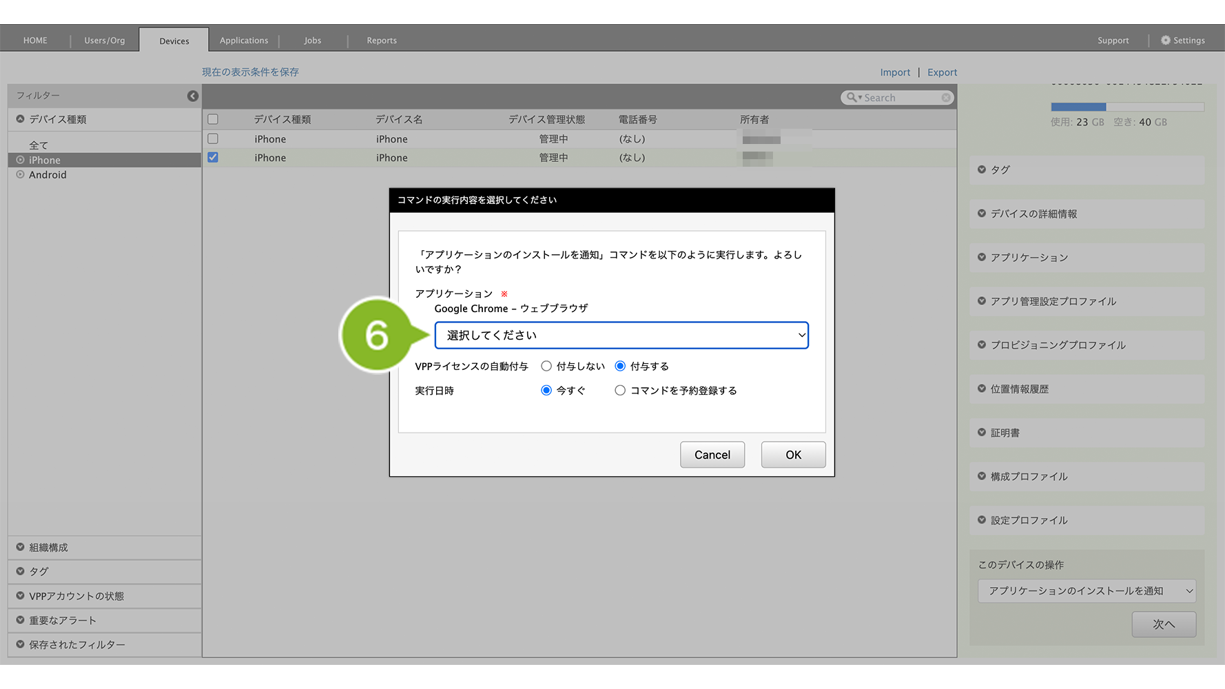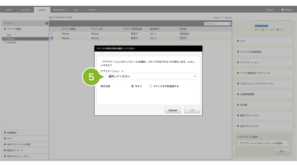 2. インストールしたい iOS デバイスを選択します。複数選択も可能です。