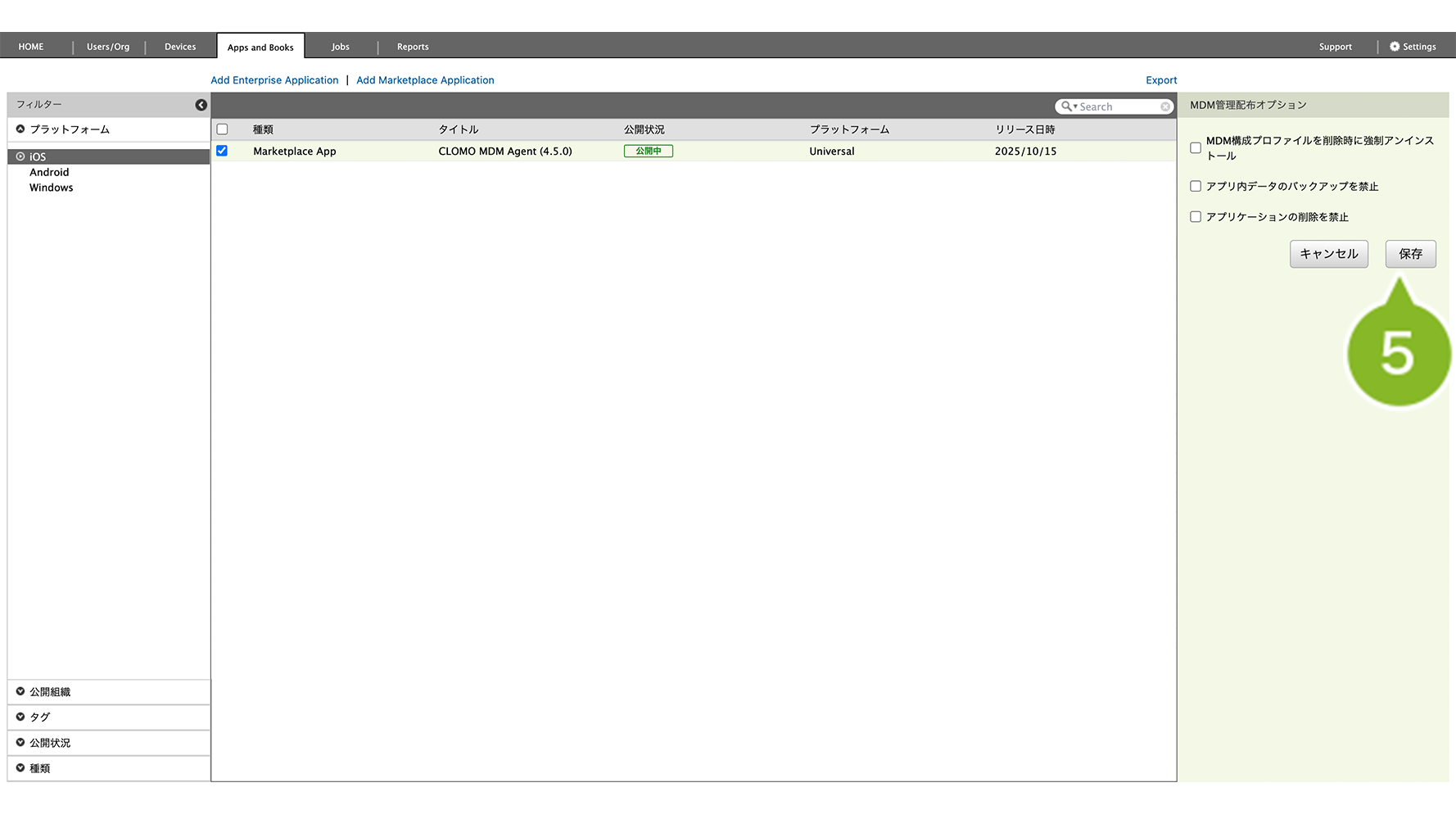 | - MDM 管理配布オプション | - MDM で管理されたアプリ |