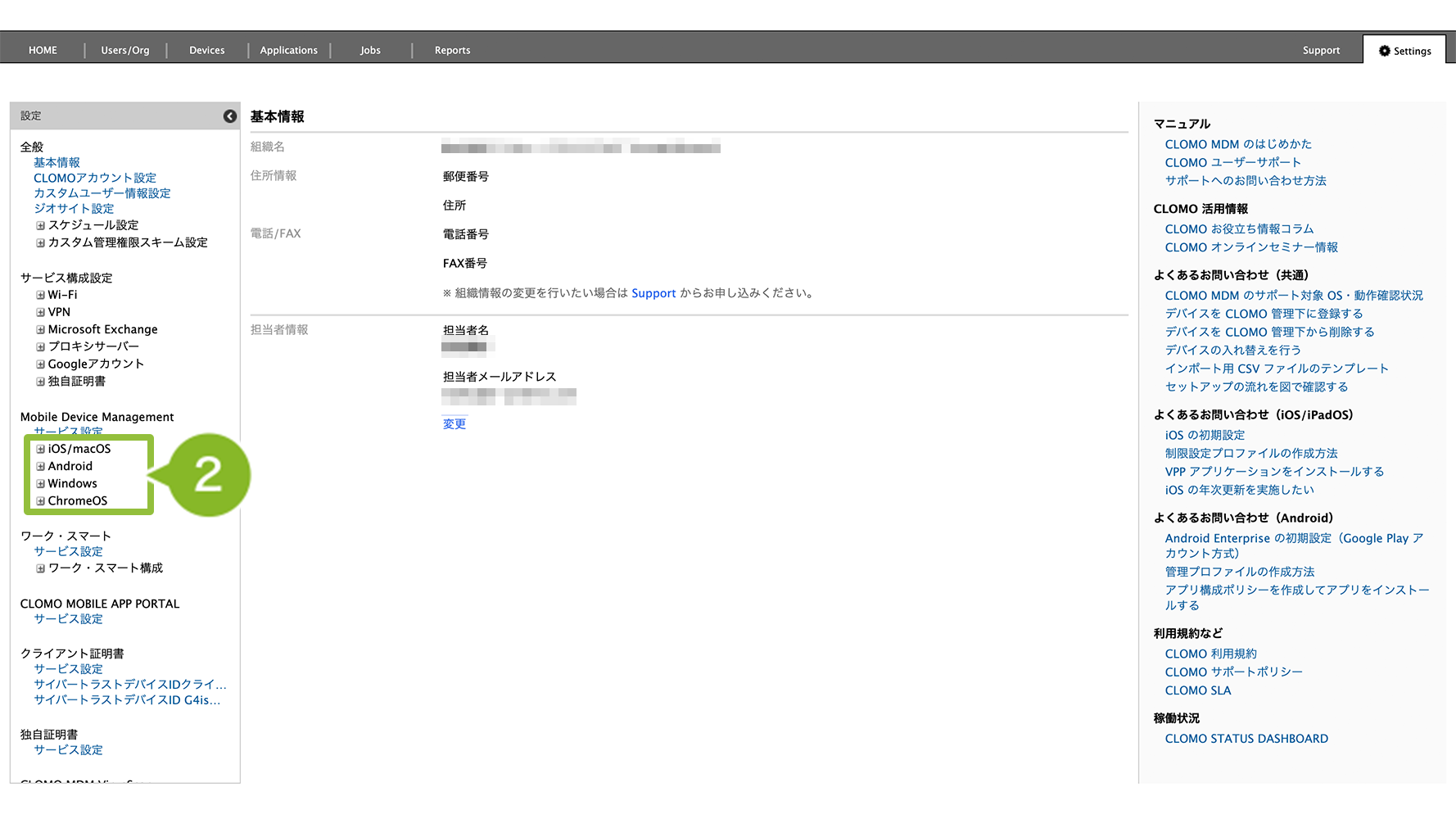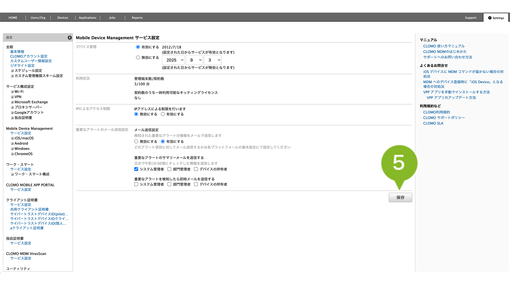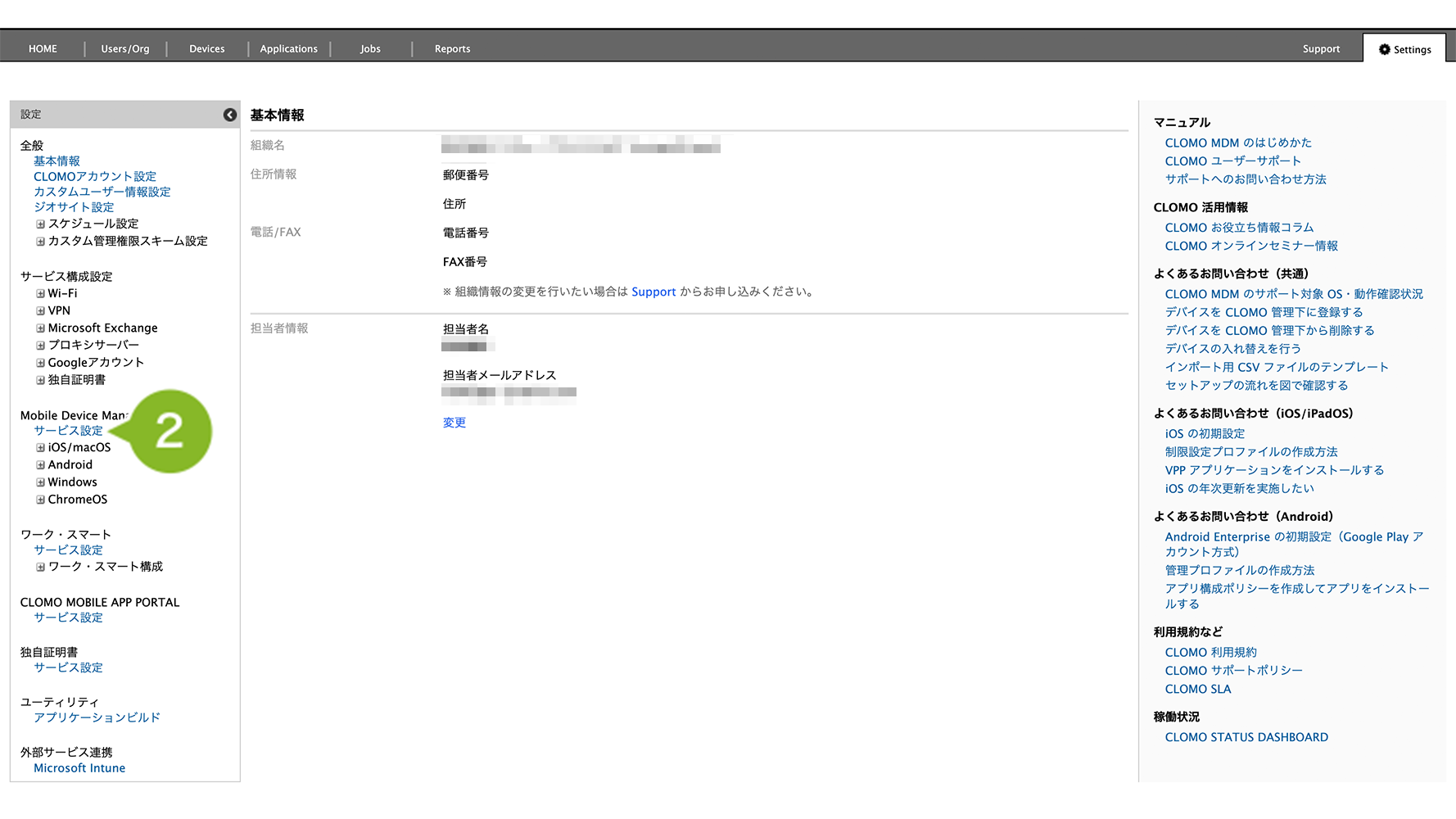 2. Mobile Device Management の[サービス設定]をクリックします。