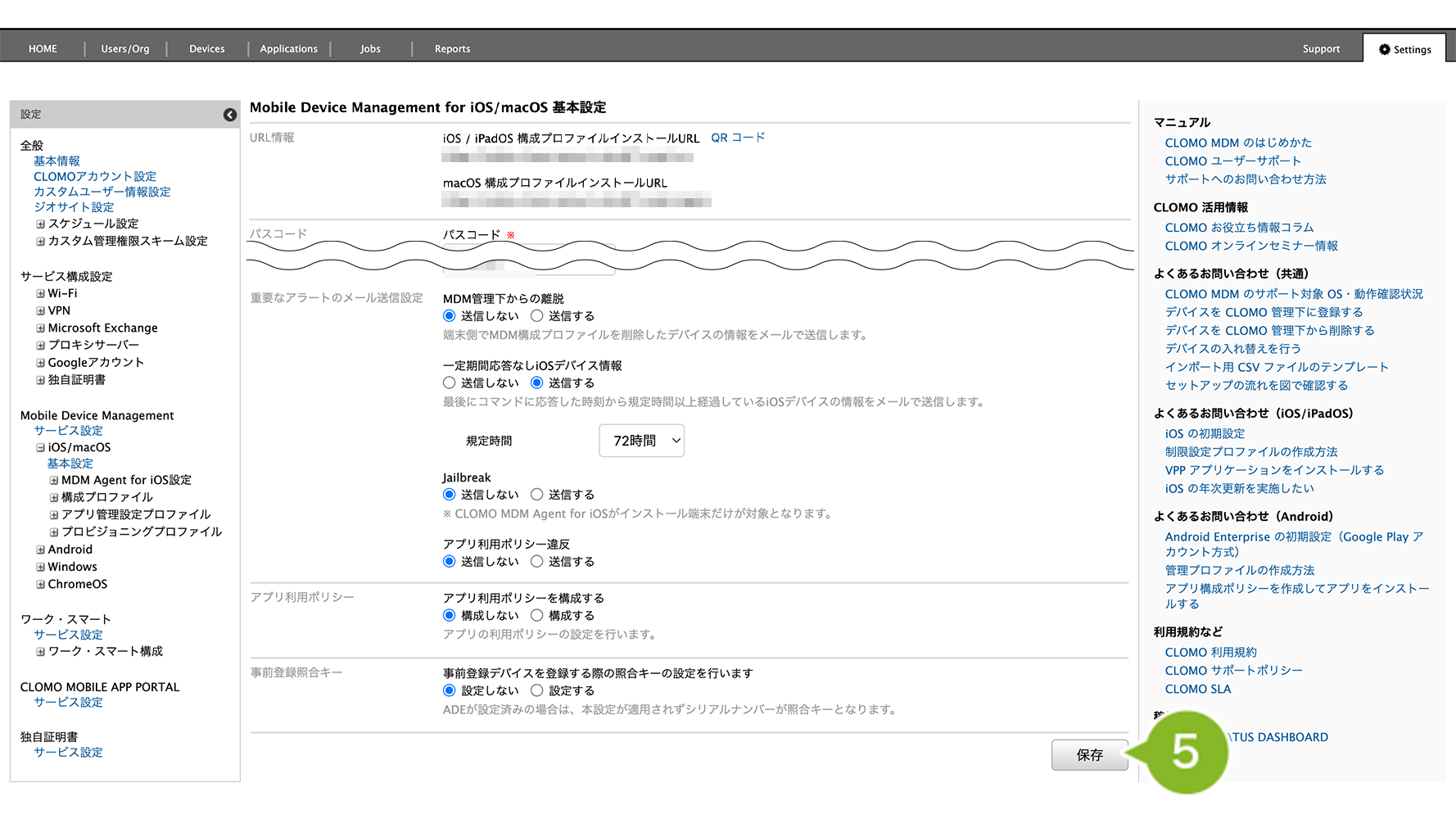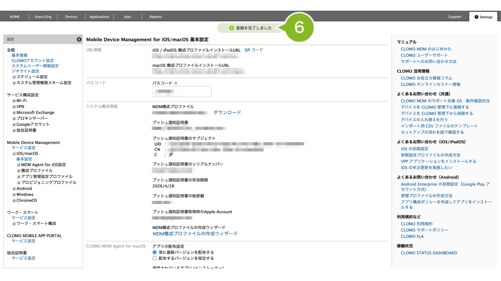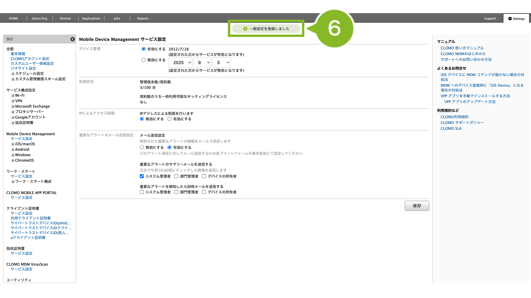 2. Mobile Device Management の[サービス設定]をクリックします。