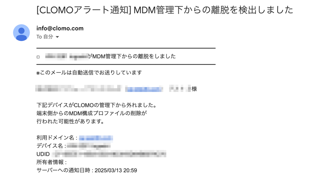 (デバイス名)が MDM 管理下からの離脱を検出しましたiOS / macOS