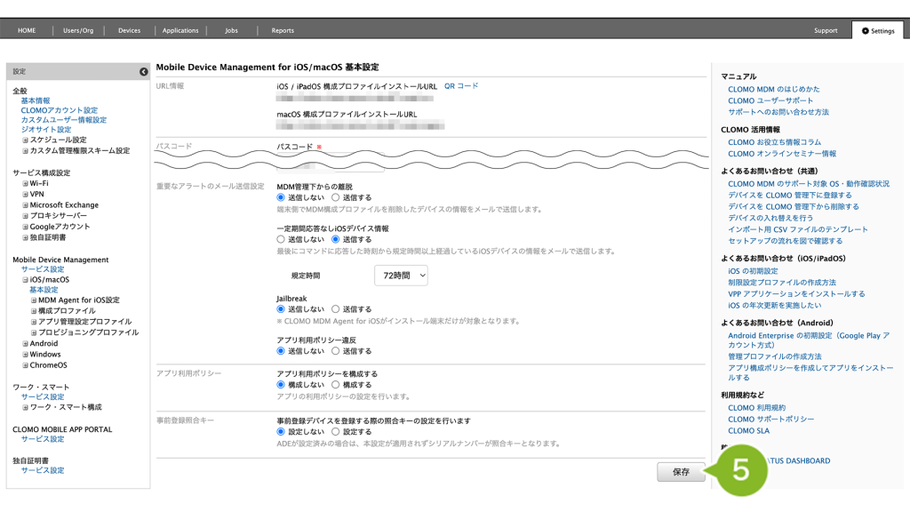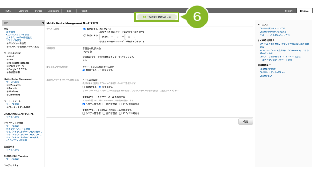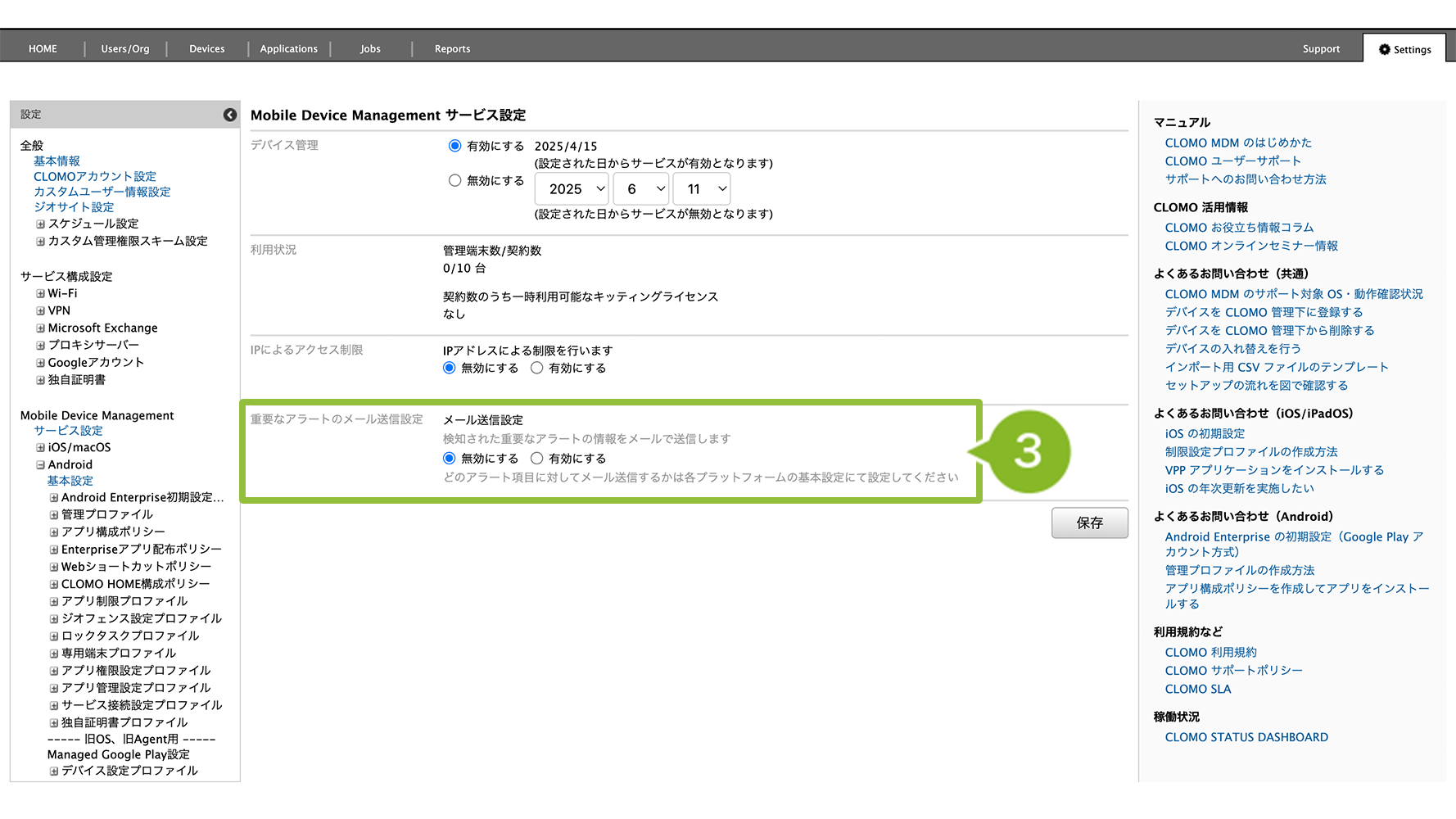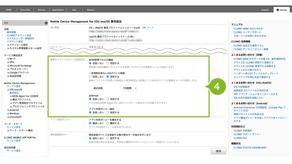 2:デバイス状態に応じたアラートのメール送信設定をおこなう(OS 別で設定が必要)