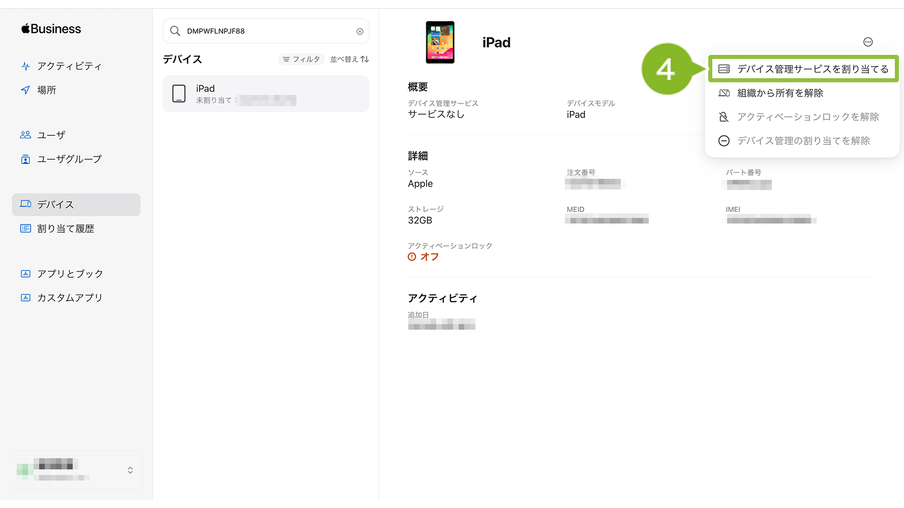 4.「デバイス管理サービスを割り当てる」を選択します。