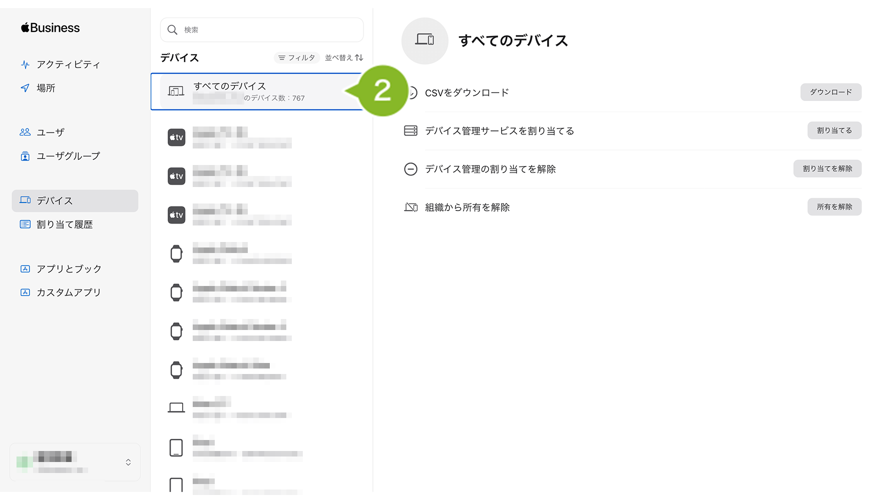 2. 「Automated Device Enrollment」項目の「ADE デバイス情報」で「全件を取得する」を選択します。