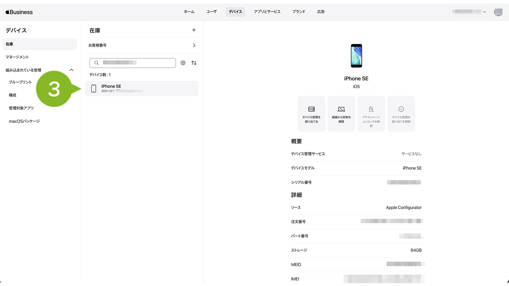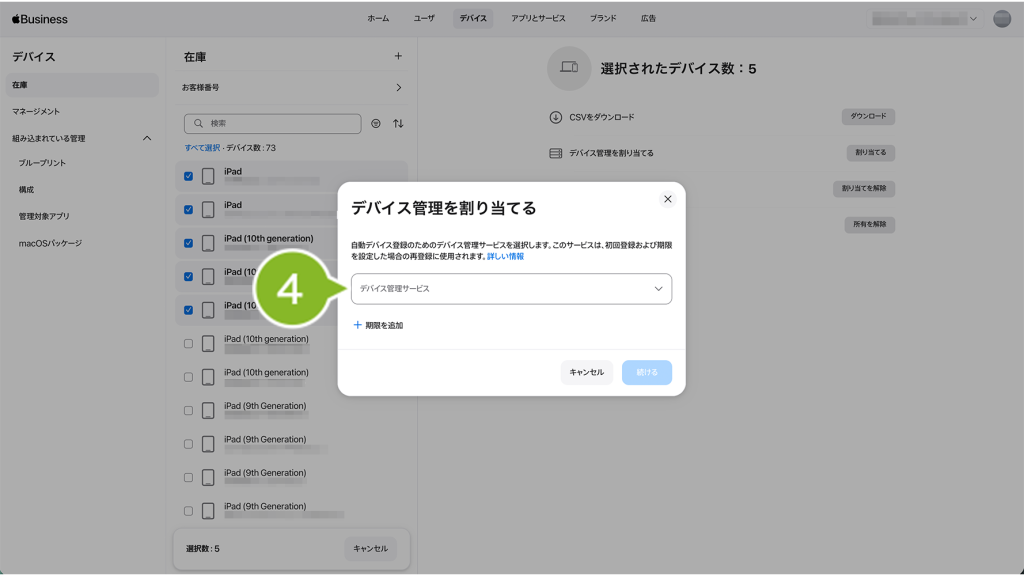 4.[デバイス管理を割り当てる]をクリックします。