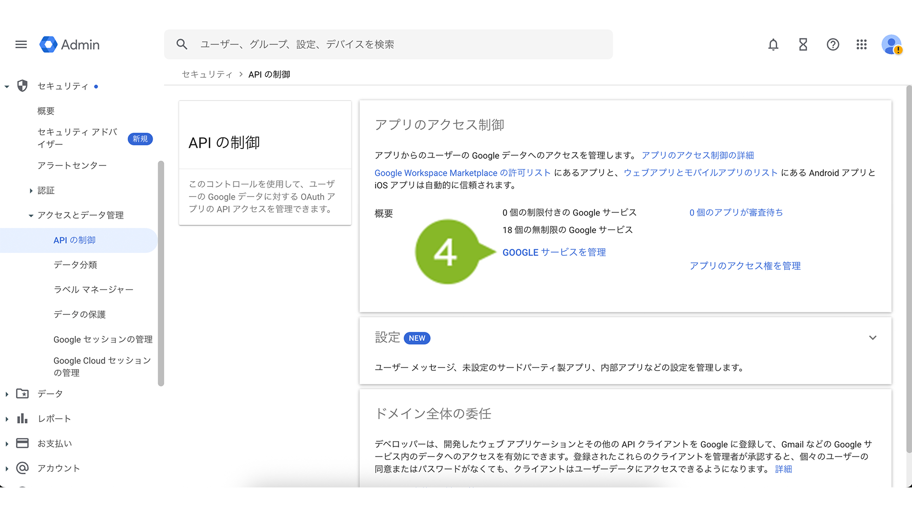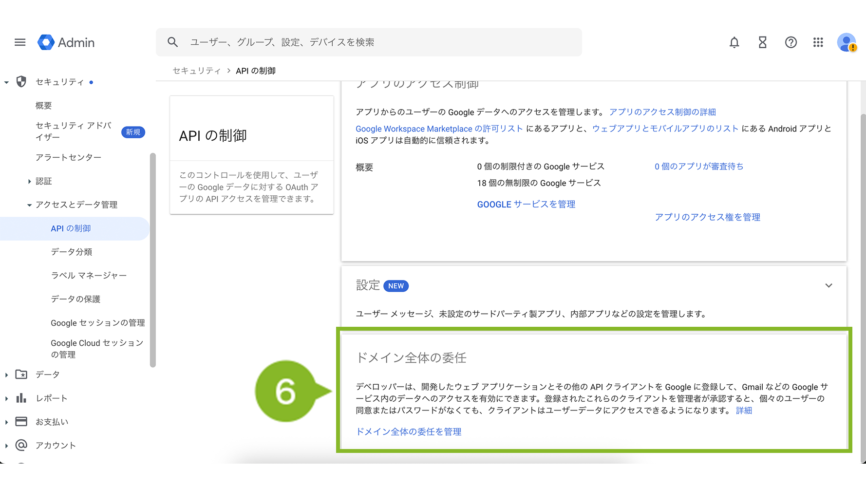 6. 「API の制御」画面に戻って「ドメイン全体の委任を管理」を選択します。
