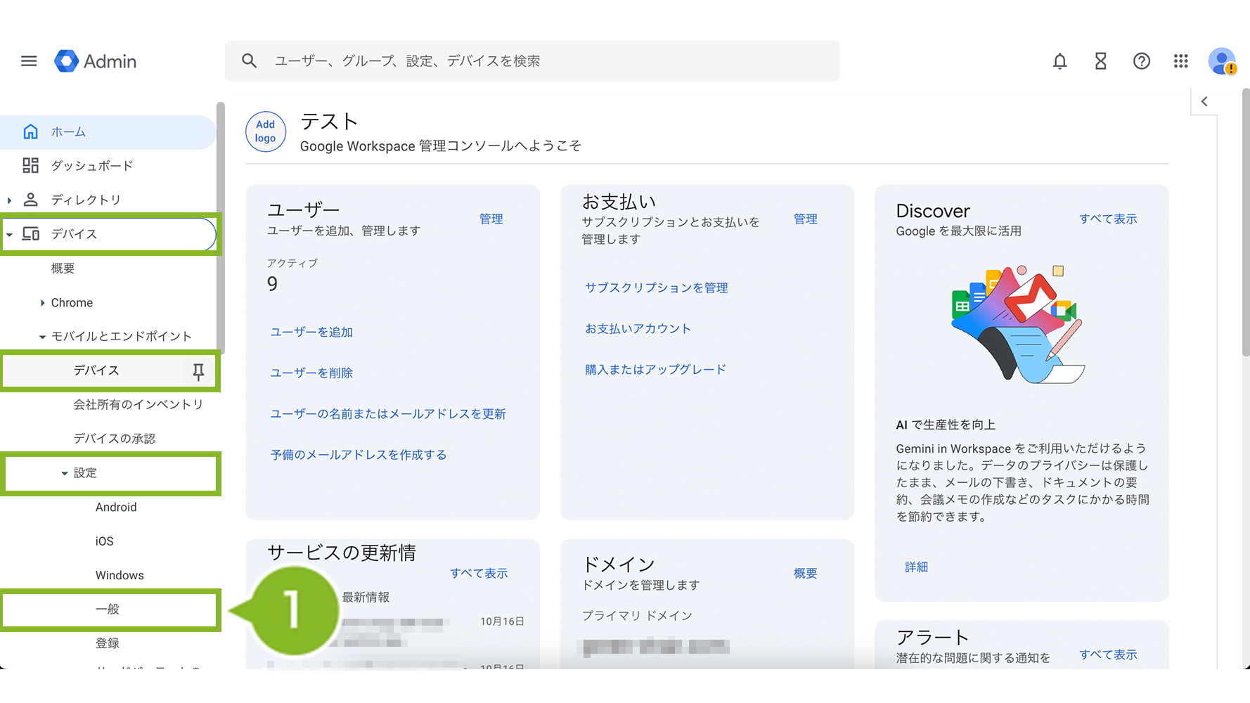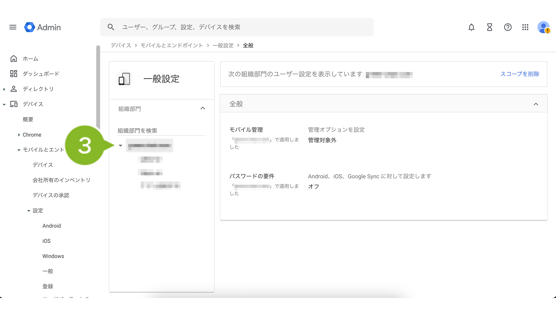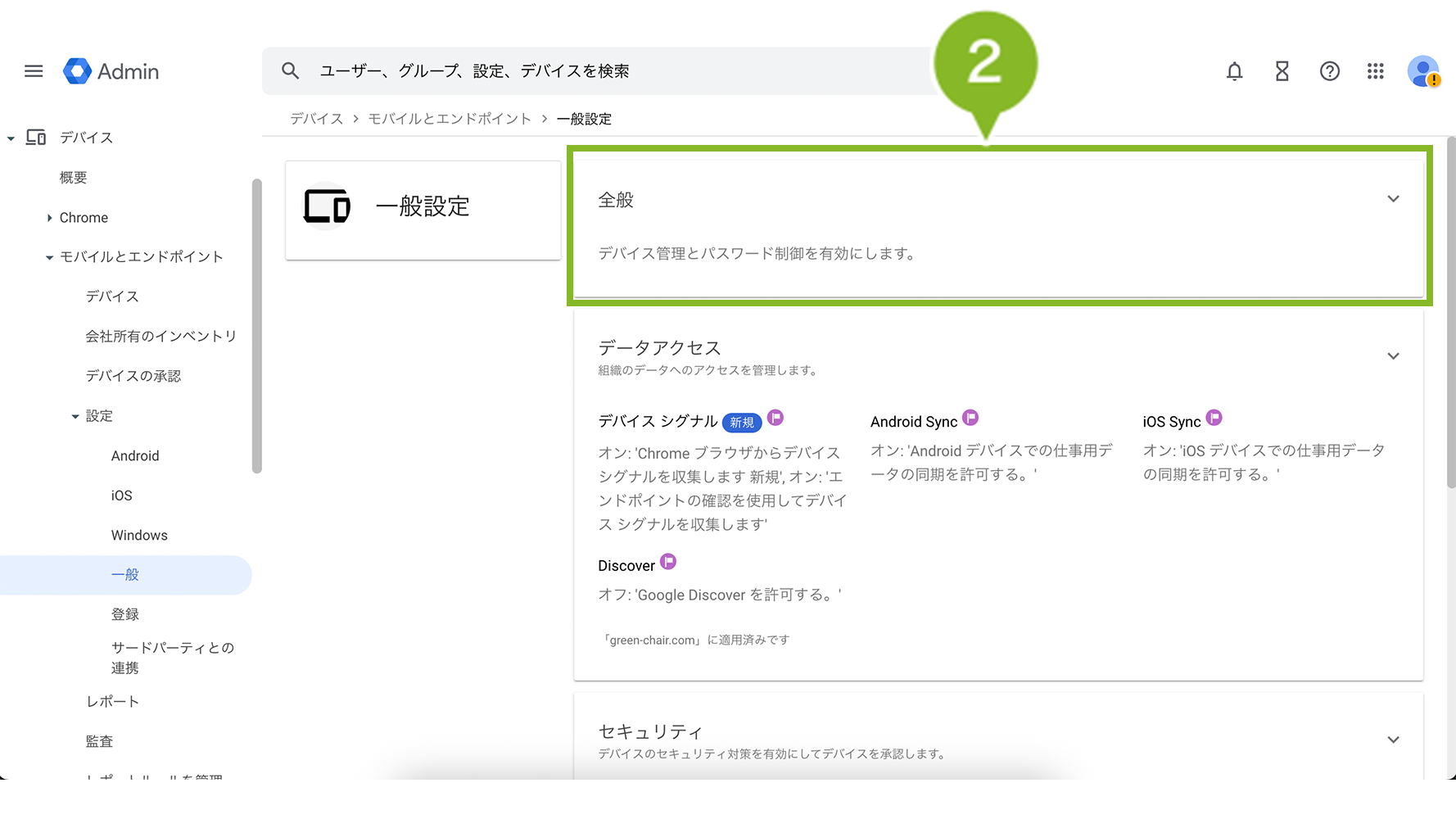 1. Google Admin コンソール から、「デバイス」>「デバイス」>「設定」>「一般」を選択します。