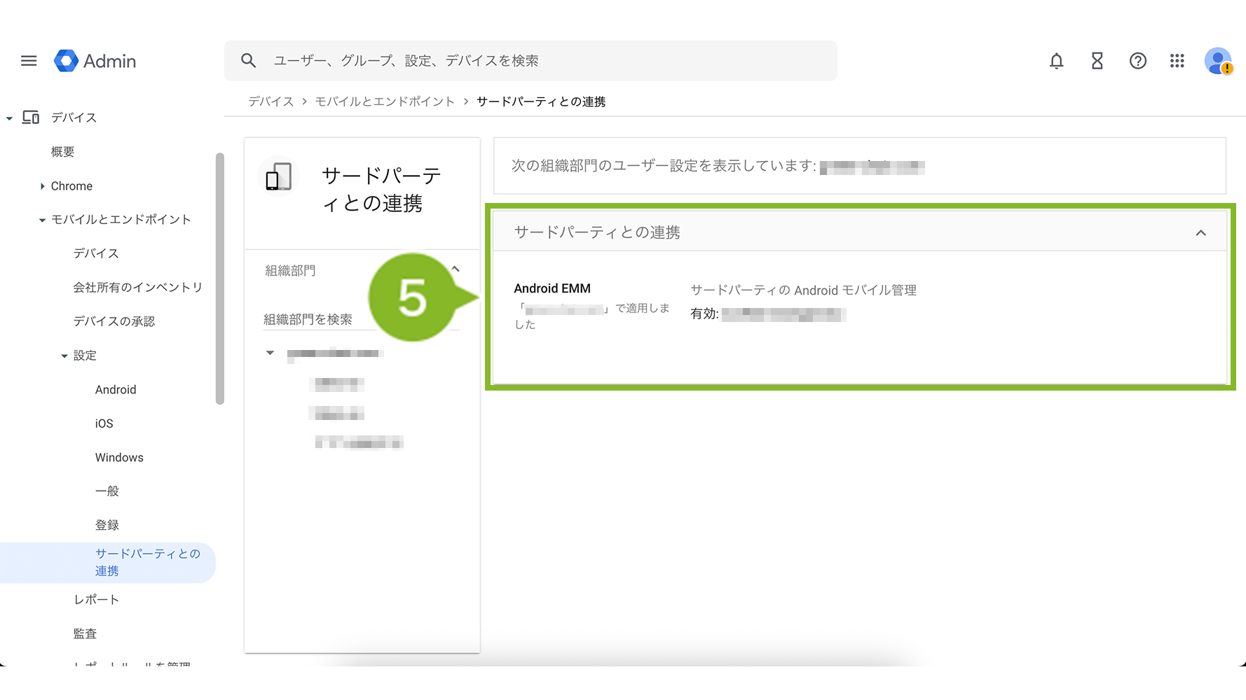 5. 「Android 向けの EMM プロバイダの管理」非表示項目を表示させると、「EMM プロバイダの管理」からEMM トークンを確認できます。