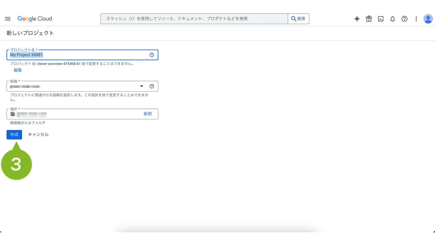 3. 任意のプロジェクト名を入力し、「作成」を選択します。