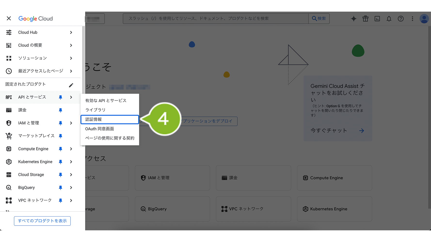 4. 「APIとサービス」から、「認証情報」を選択します。