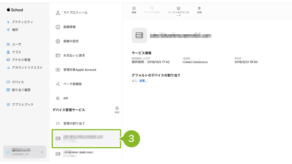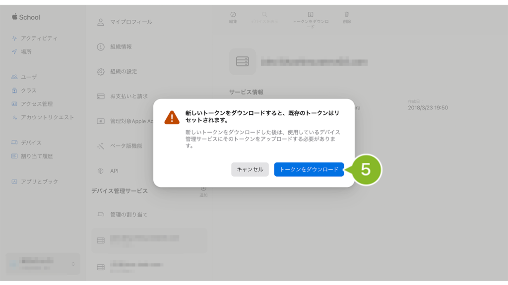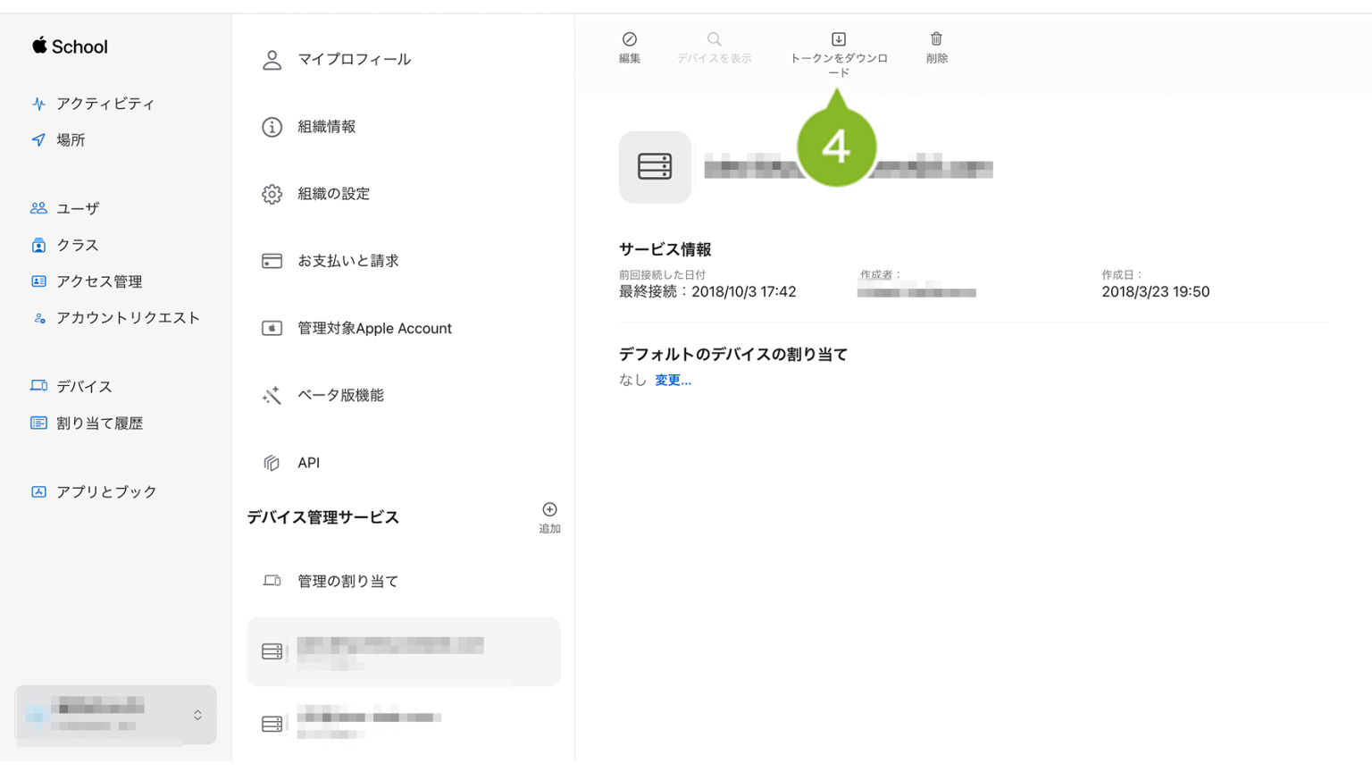 ASM(https://school.apple.com/) から、新規トークンをダウンロードします。ADE のサーバートークンには有効期限が設けられており、年に1度更新が必要です。