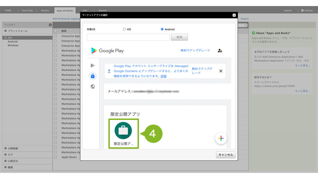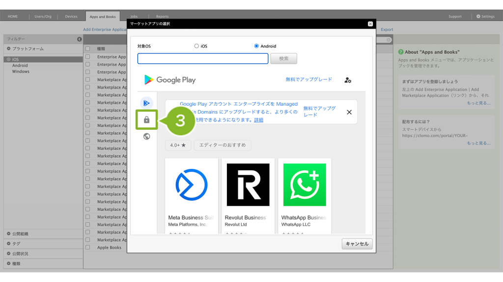 Managed Google Play では、通常の Google Play に公開されているアプリから承認したものだけを公開することで、デバイスにインストール可能なアプリを限定できます。