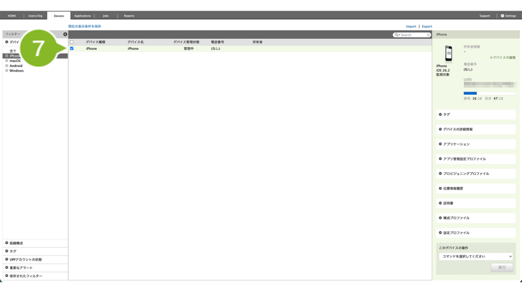 - CLOMO 管理下に置かれたデバイスの情報を確認する