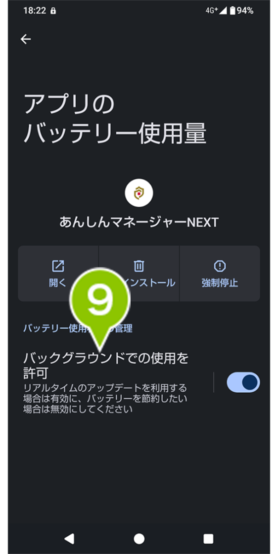 9.(Android15以上をご利用の場合)バックグラウンドでの使用を許可をタップします。