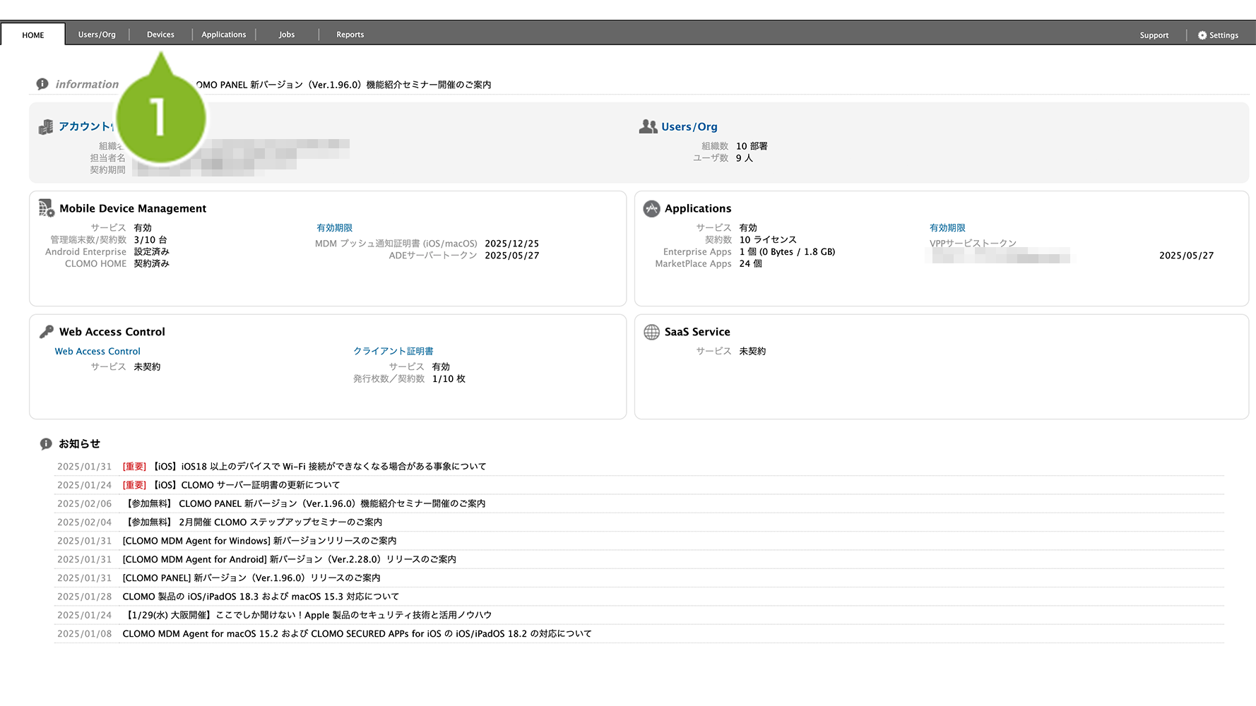 1. CLOMO PANEL にログイン後、「Devices」を選択します。