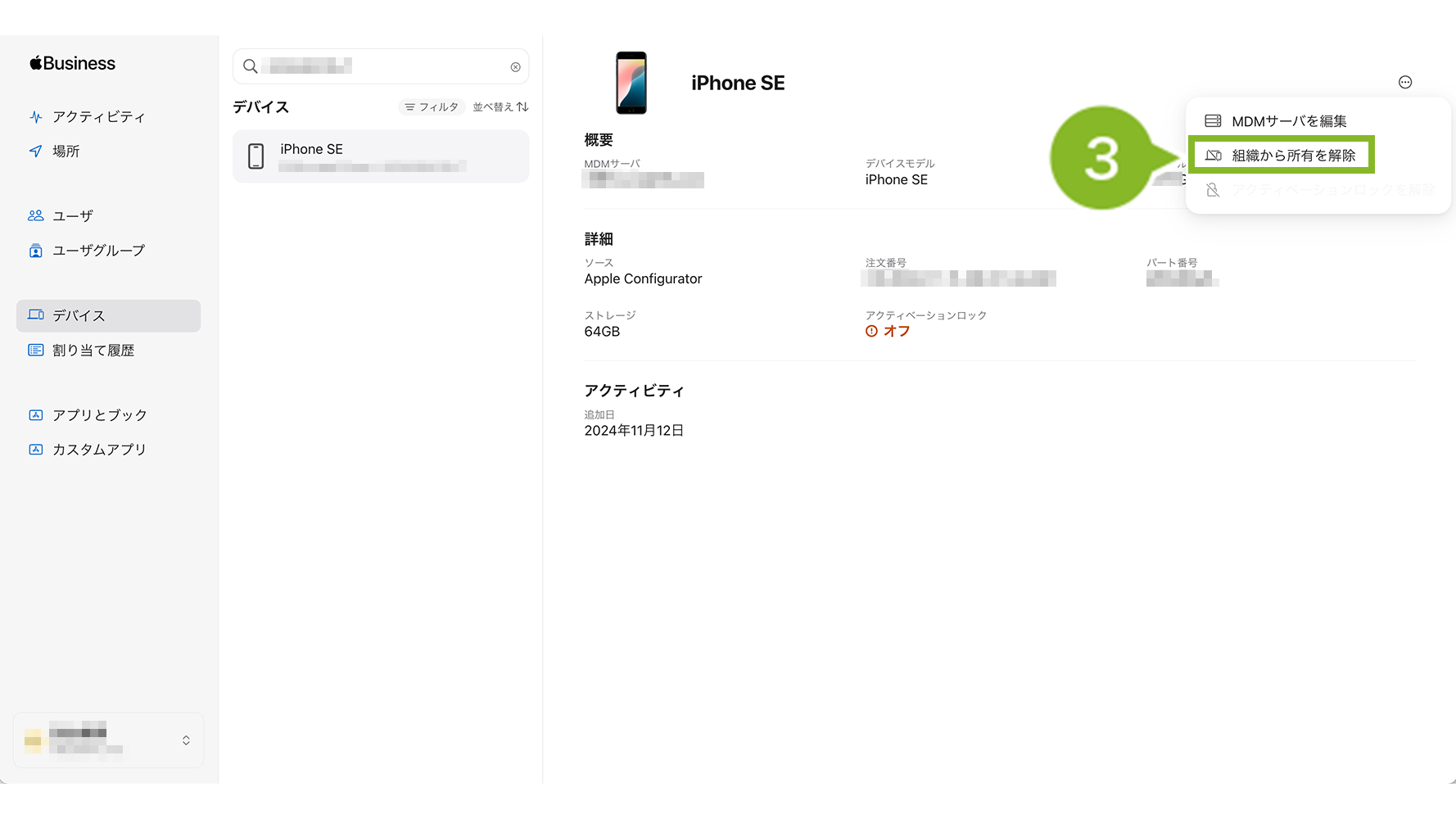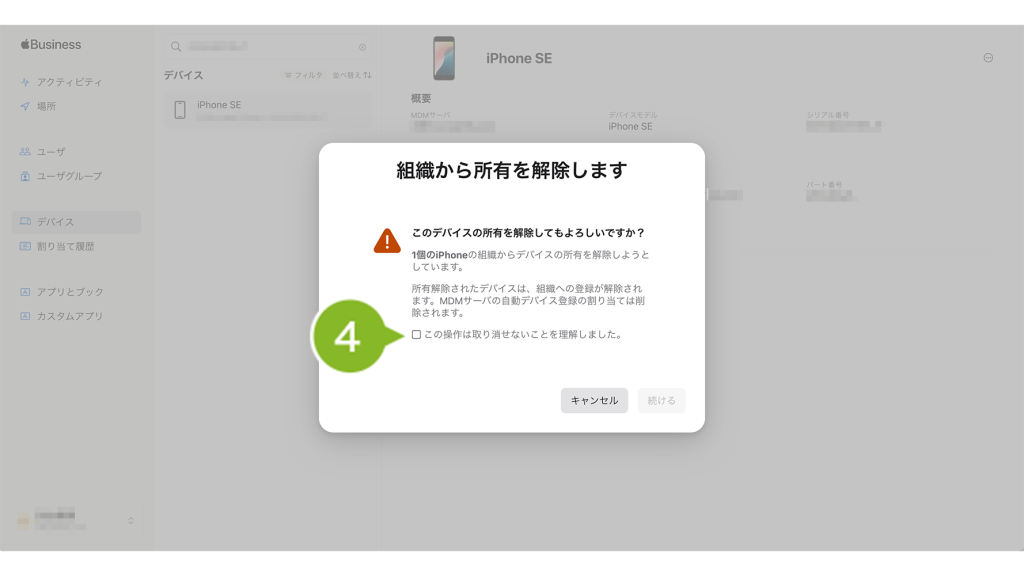 Apple Business Managerでデバイスの所有解除を行う(Apple サポート)