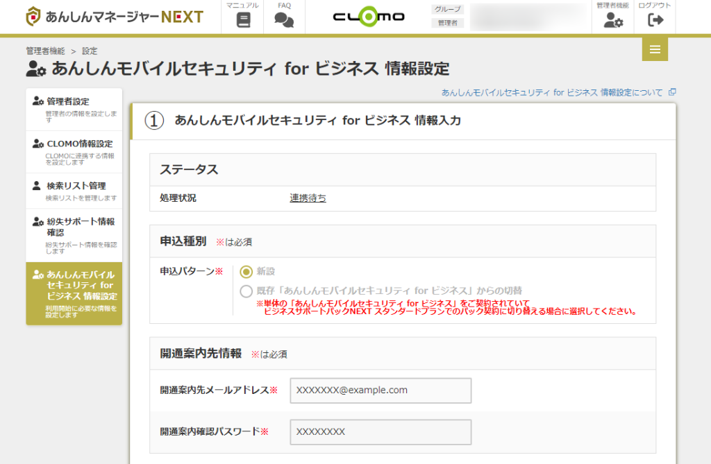 あんしんモバイルセキュリティ for ビジネス情報登録~開通完了まで