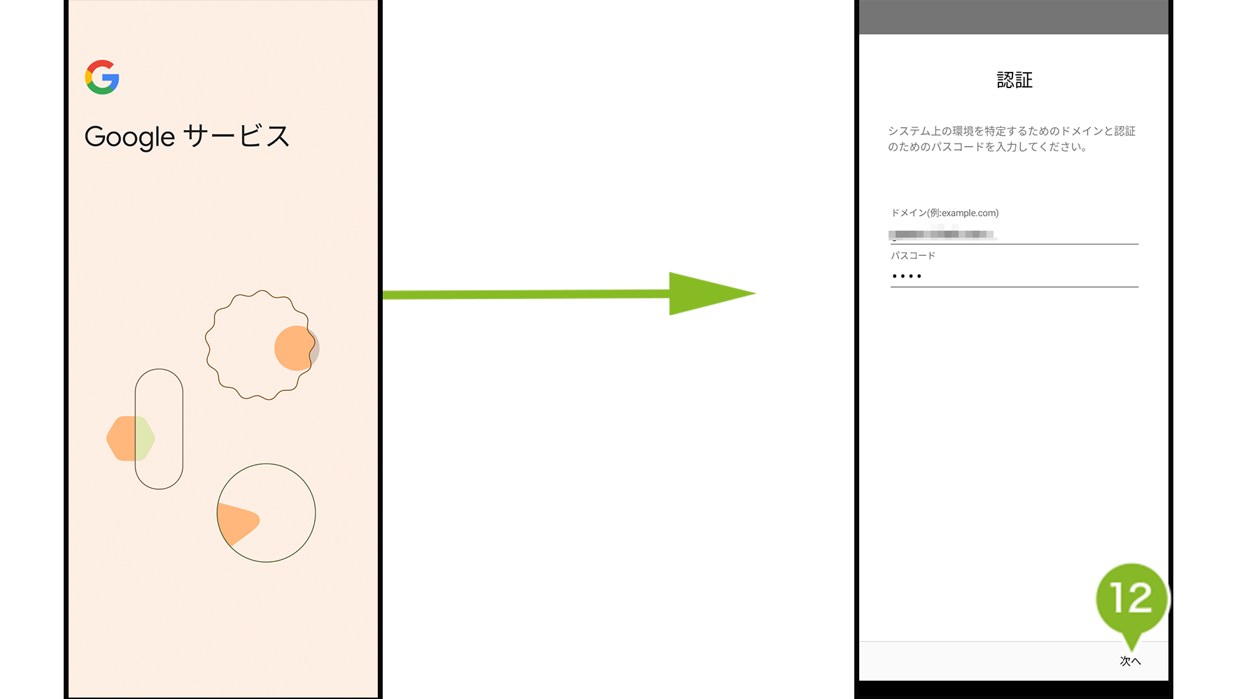 12. 認証画面が表示されます。ドメインとパスコードが入力されていることを確認して「次へ」を選択します。