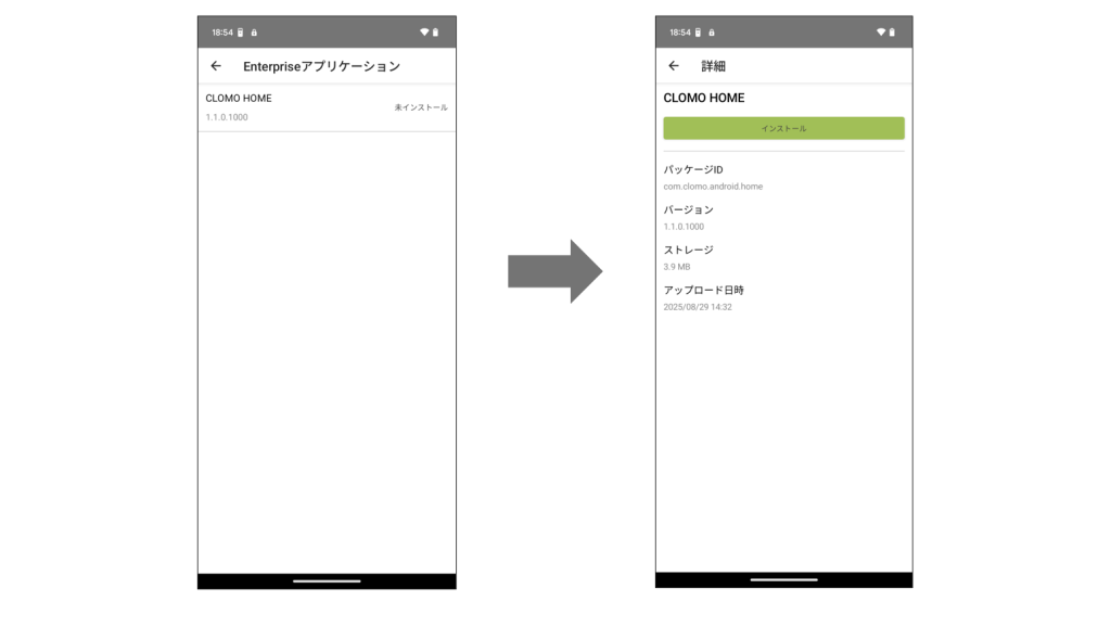 CLOMO MDM Agent 内の Enterprise アプリのインストール画面