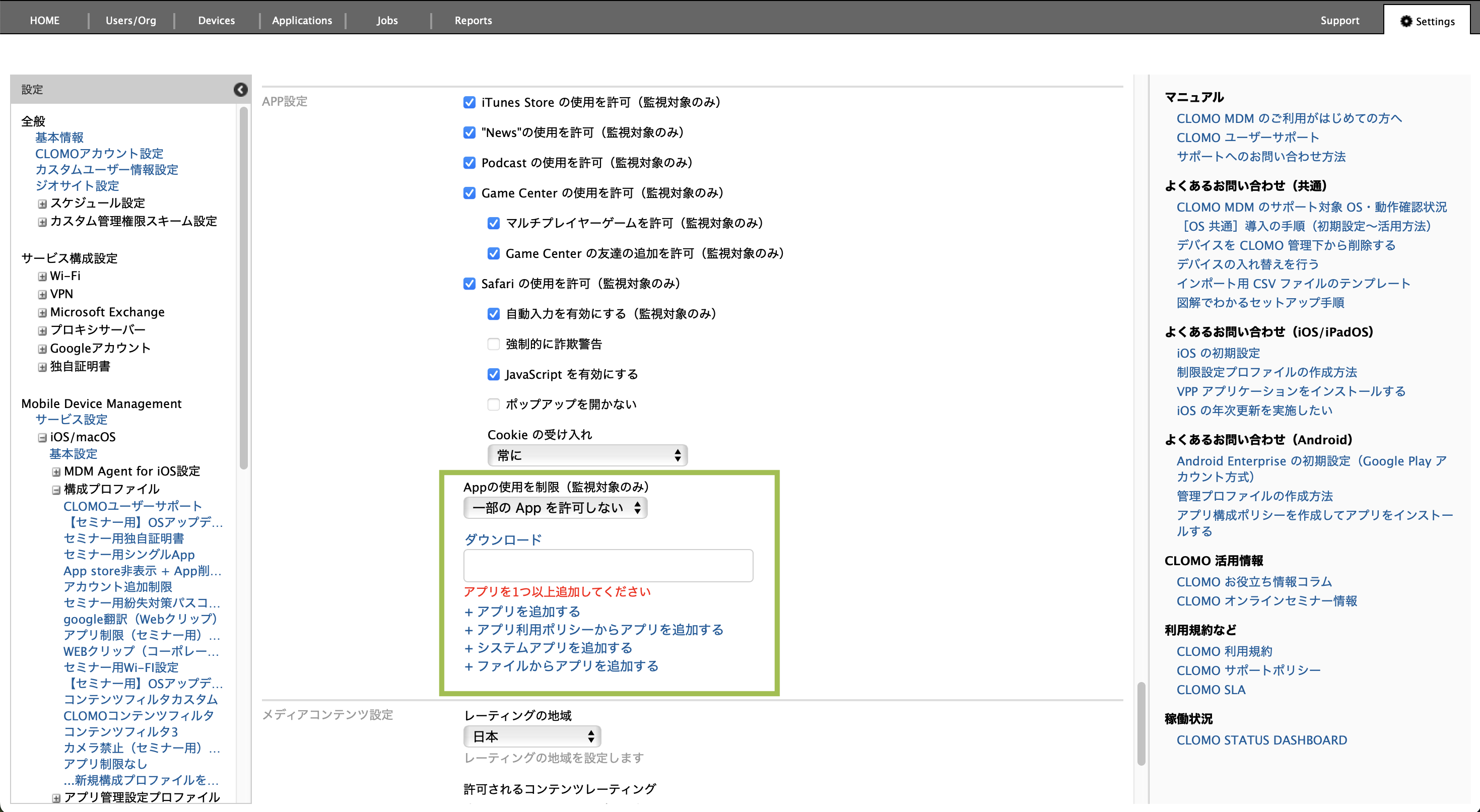 CLOMO でできる各アプリの利用制限方法