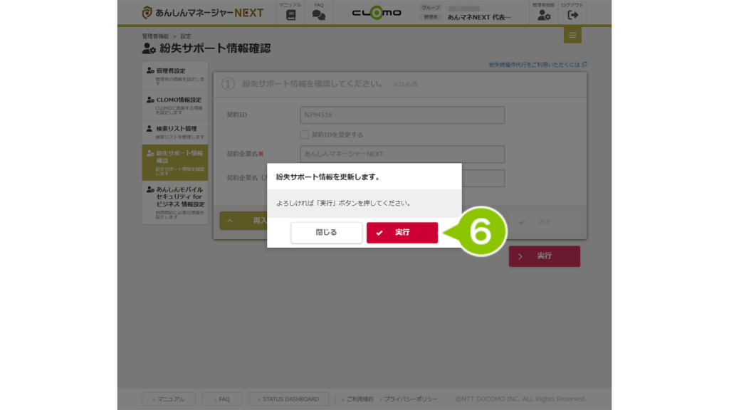 紛失サポート情報を変更する