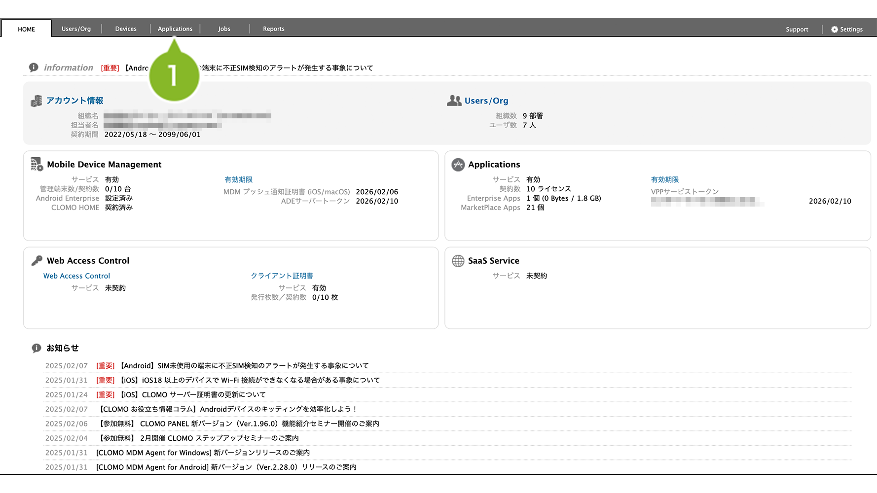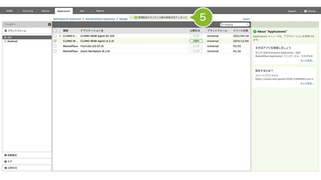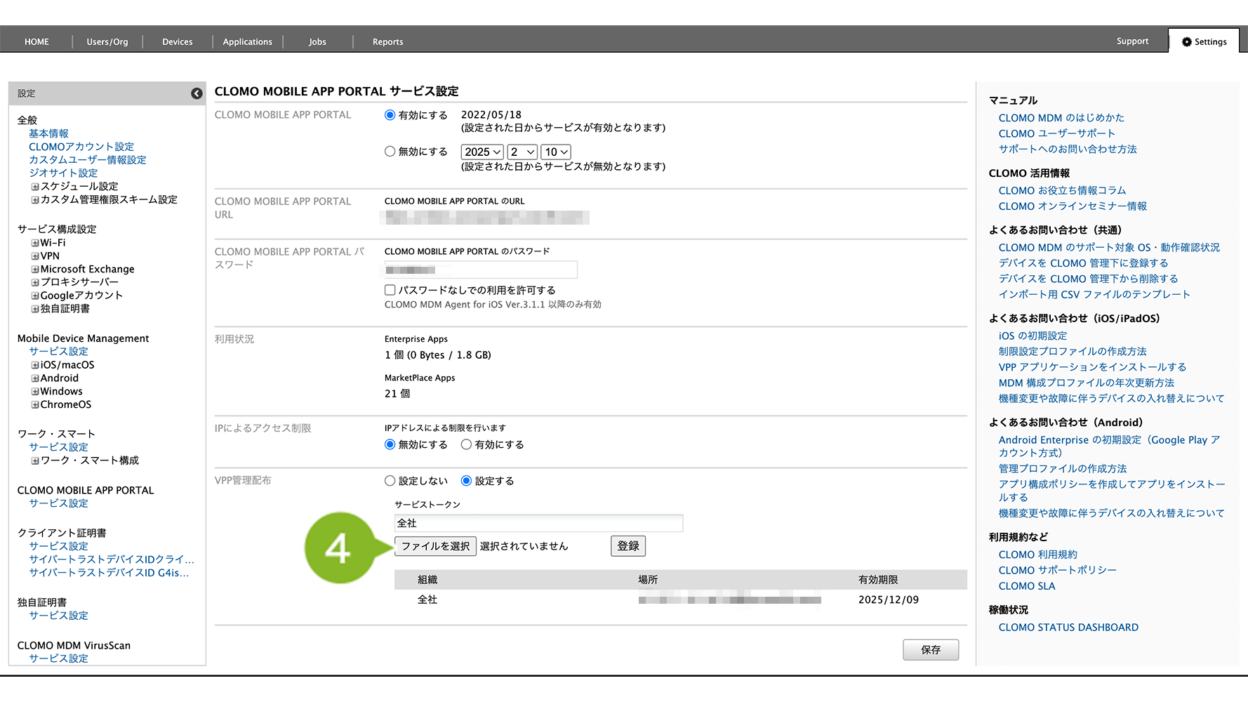 有効期限は CLOMO PANEL の HOME 画面「Applications」欄の「VPPサービストークン」有効期限からも確認することができます。