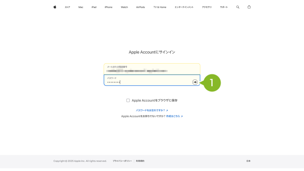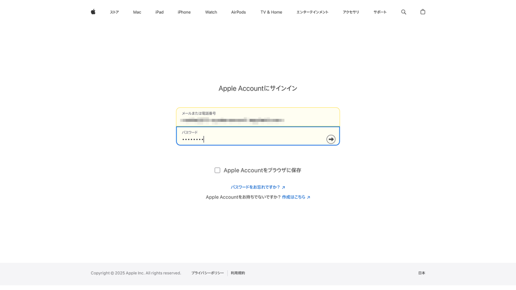 年次更新時には、初年度に初期設定をおこなった Apple Account とパスワードで年次更新をすることが必要です。