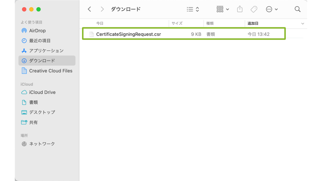 10. ダウンロードが完了したら、保存先のフォルダ内に署名済み CSR ファイルが保存されていることを確認します。