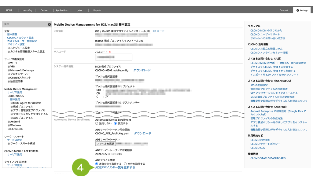 4. Automated Device Enrollment 欄の ADE デバイス情報[ADE デバイスの一覧を更新する]をクリックします。