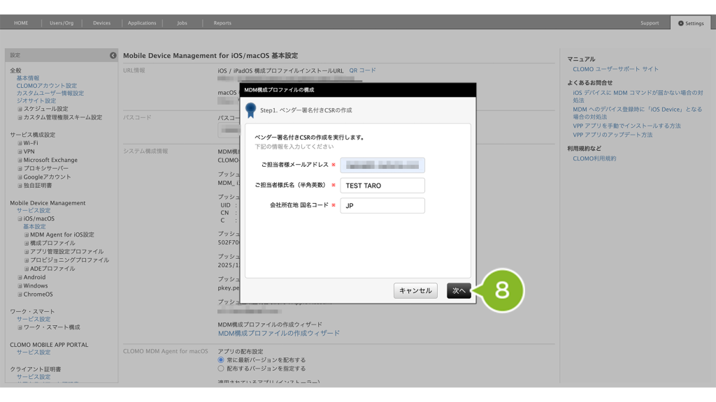 入力する値は CSRファイルに記載される情報ですが、MDM構成プロファイルの作成には直接影響しません。