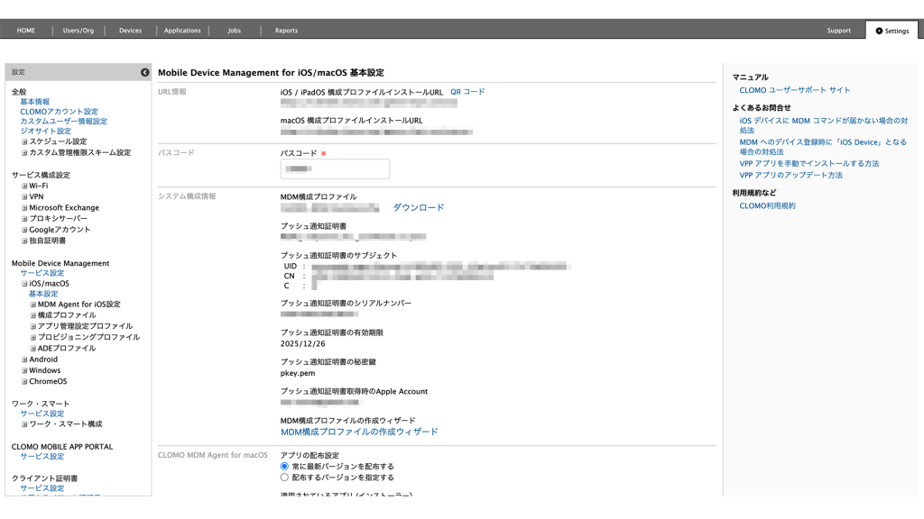 この証明書の有効期限が切れると、CLOMO MDMからスマートフォンやタブレットにコマンドが届かなくなります。