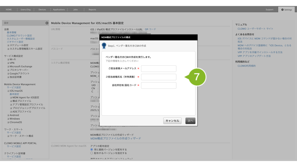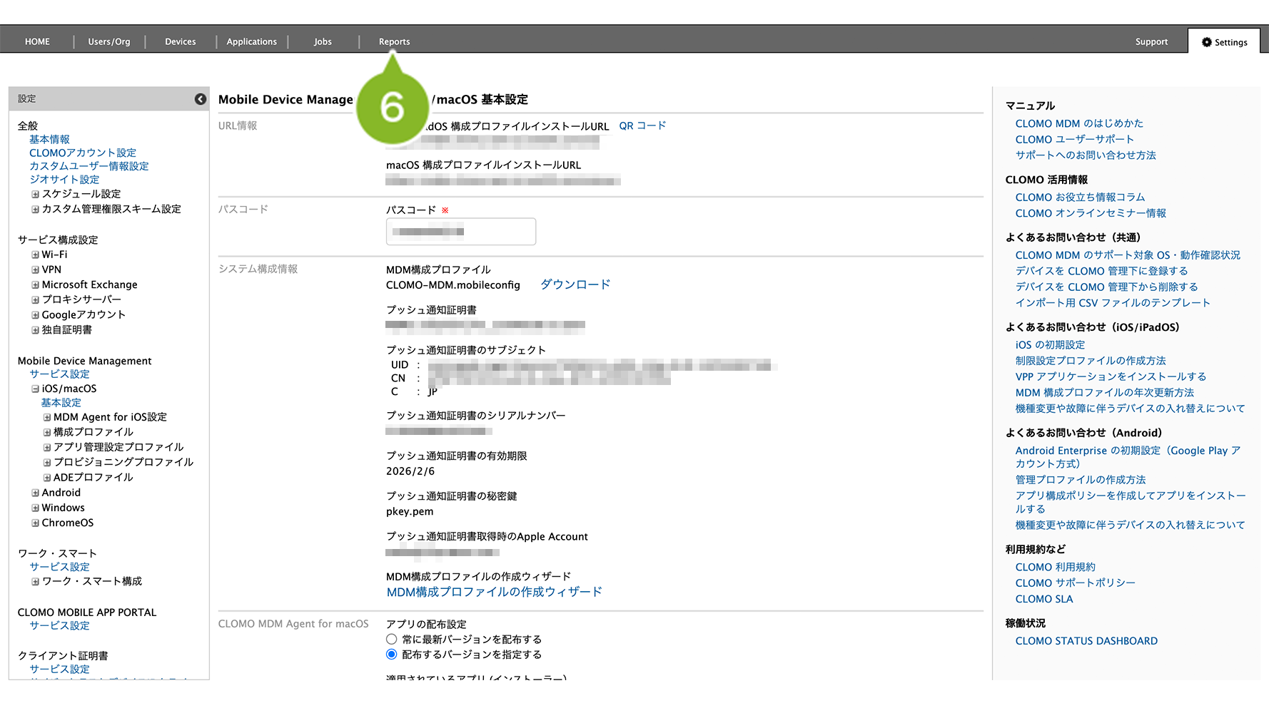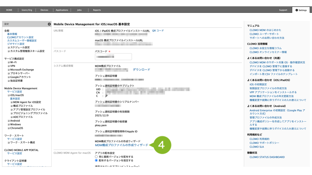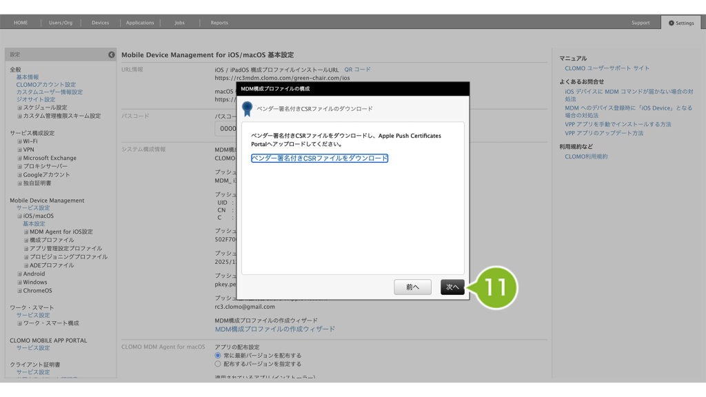 - 1-4-3:Apple Push Certificate Portal(APCP)で作成した証明書ファイルを CLOMO PANEL にアップロードする