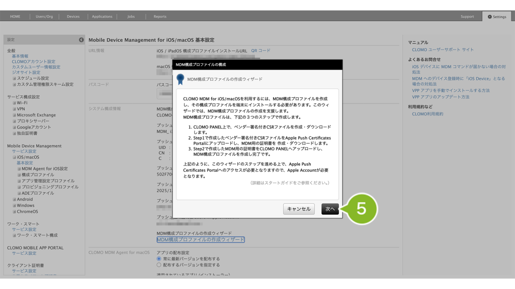 5. MDM 構成プロファイルの作成ウィザードが表示されます。[次へ]をクリックします。