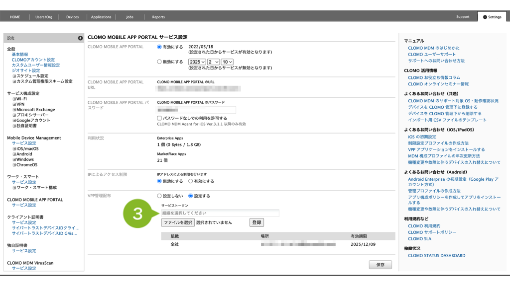 ・CLOMO MDM でご利用中のサービストークンがわからない場合