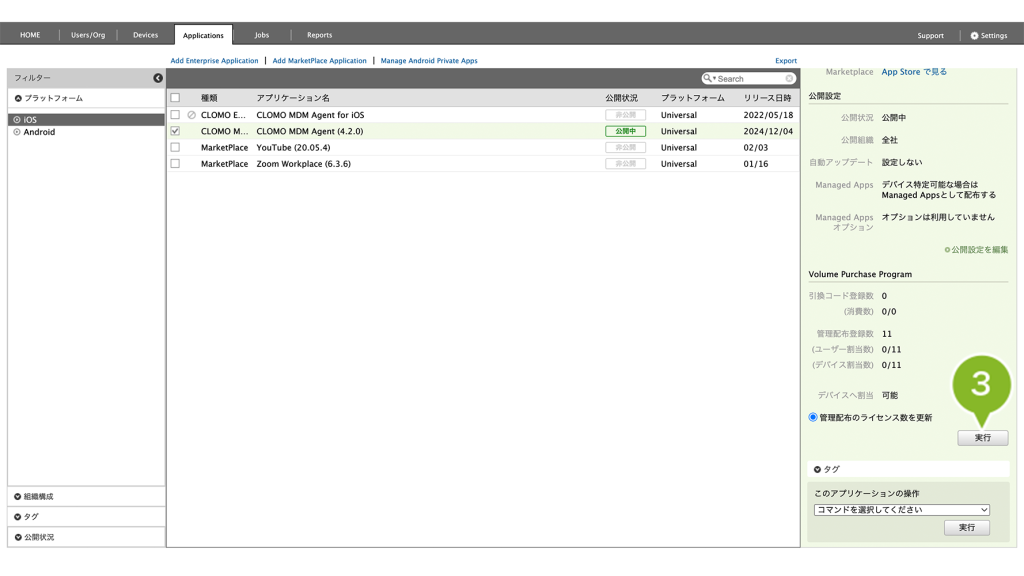 3. Volume Purchase Program(VPP)の[実行]をクリックします。